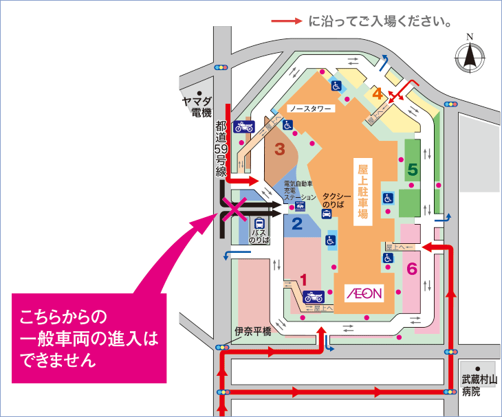・ご利用時間はイオンモールむさし村山の駐車場利用時間と同じものとします。イオンモールむさし村山が休業日や工事等により予告なく本駐車場がご利用出来ない場合がございます。