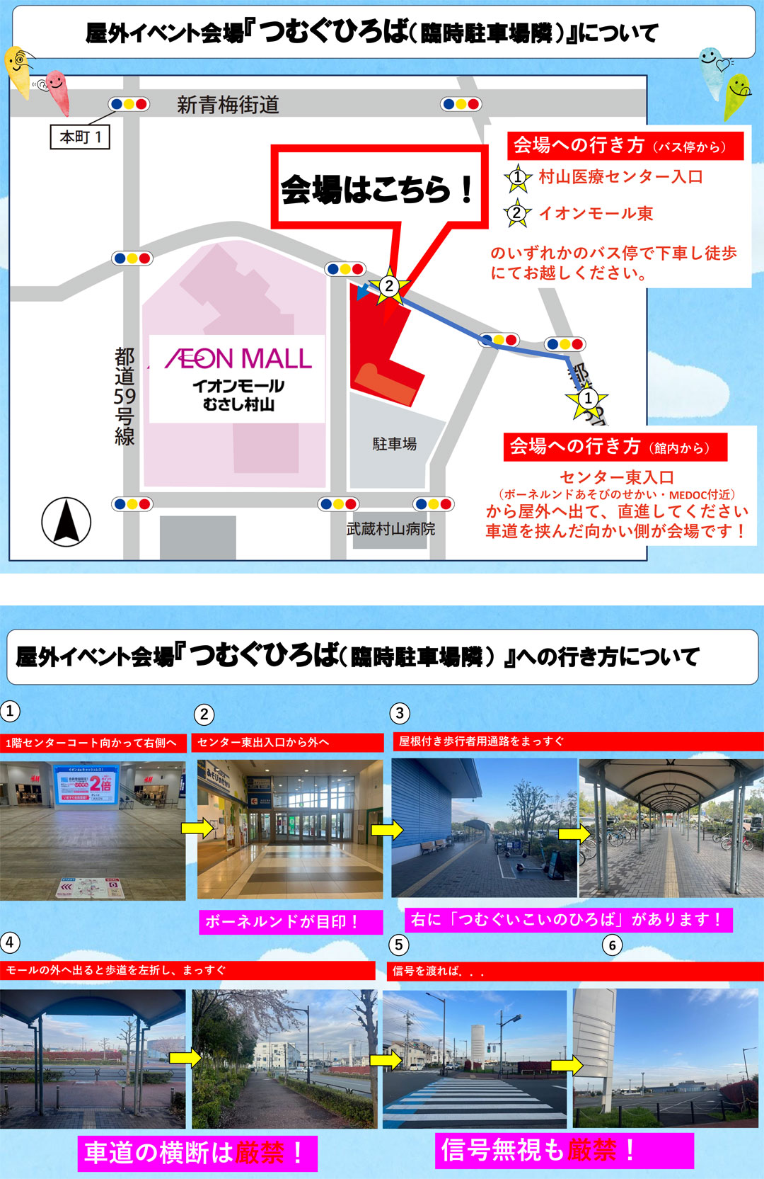 つむぐひろば(臨時駐車場隣)行き方のご案内